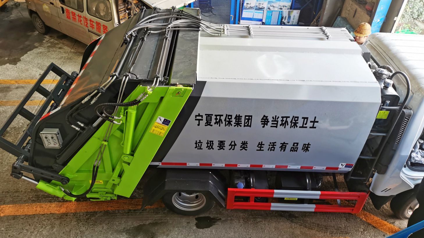 上裝配置:采用武鋼Q345優質加錳鋼制作,厚度邊3低4,全車海普瑞斯油缸(中外合資品牌),優質中梅多路閥,嘉善取力器,日本華爾卡密封圈,德國西門子公司自動控制技術(PLC),電控手動雙控制系統,駕駛室與車尾部雙控制箱,可裝3.5噸生活垃圾,帶污水收集箱,可防污水滴漏二次污染。 |