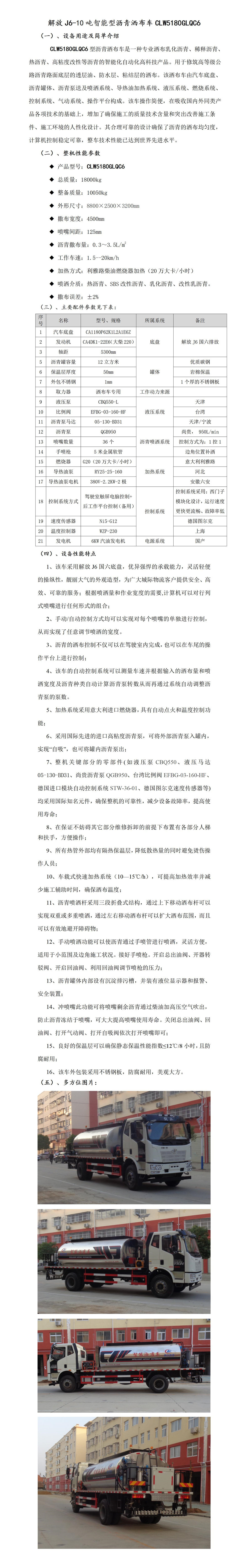 • 解放J6-10噸瀝青灑布車(智能型)程力威牌CLW5180GLQC6型瀝青灑布車