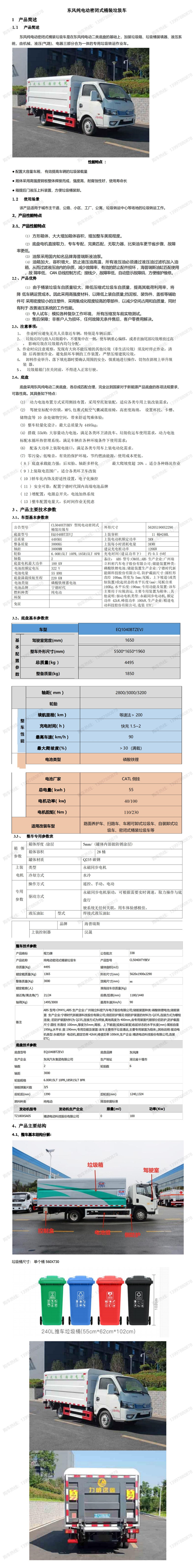 • 東風純電動密閉式桶裝垃圾車(程力牌CL5040XTYBEV型純電動密閉式桶裝垃圾車)