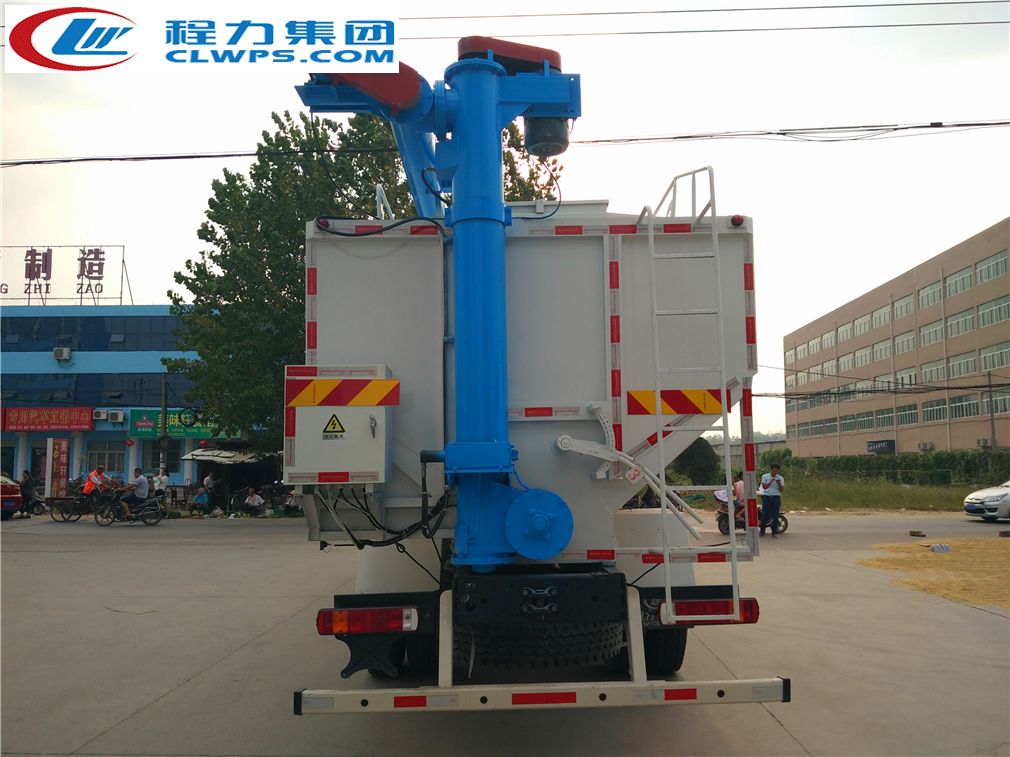 上裝配置:罐體材質采用4mm優質碳鋼板,整車3條絞龍,由3個5.5KW電機帶動,頂部絞龍用液壓控制舉升,可左右旋轉180°。罐體內分為肆個倉,可以獨立控制各分倉卸料順序和速度. |