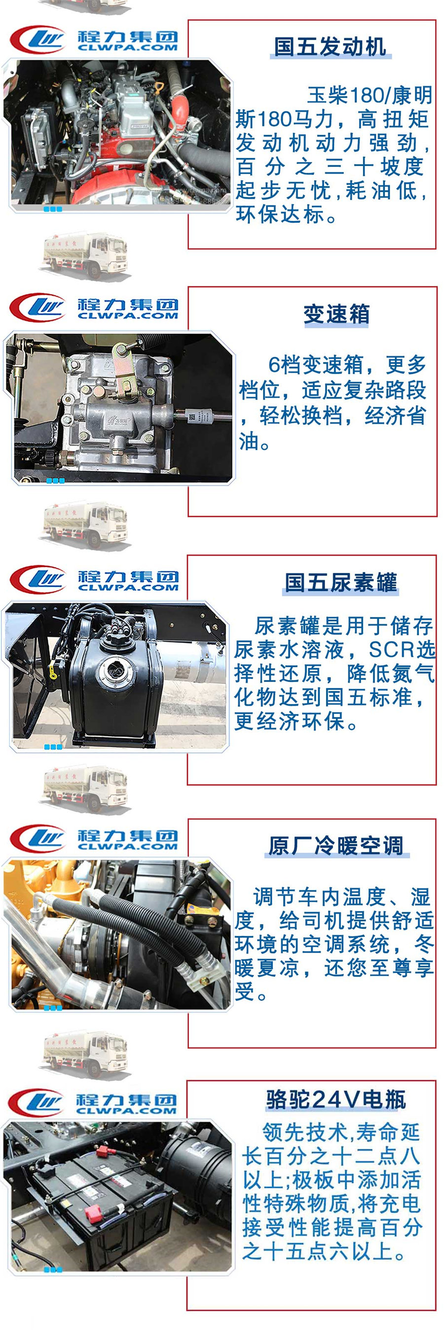 程力威牌散裝飼料運輸車特點: 底盤按陜汽公司標準實行三包,上裝三包期壹年。 |