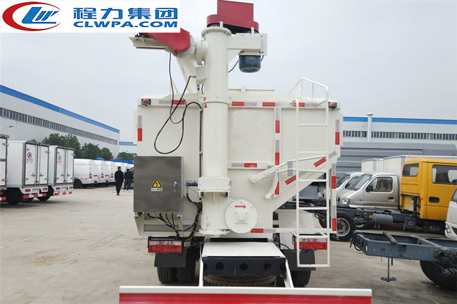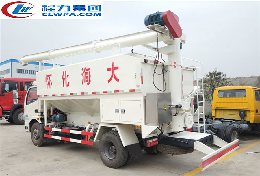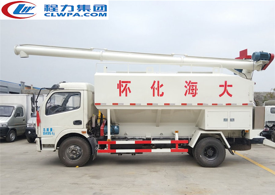 上裝配置:罐體采用武鋼專用容積板制作,廂體有效容積12立方,分2倉(可同時(shí)裝運(yùn)兩種飼料),全車叁根絞龍,頂部一根長(zhǎng)度為6.5米,絞龍電壓380伏,3個(gè)電機(jī)功率5.5千瓦,一個(gè)液壓減速機(jī),帶15米電纜,散裝飼料車的飼料罐架設(shè)在卡車的底盤上,罐頂開有進(jìn)料口.頂部的一根螺旋輸送卸料管(俗稱卸料絞龍)則可自由回轉(zhuǎn)和抬升,抬升的仰角可達(dá)60度。運(yùn)輸時(shí),頂部的螺旋管平臥在罐頂;卸料時(shí)則抬起,使管端的出料口與畜禽飼養(yǎng)場(chǎng)貯料罐頂部的進(jìn)料門相接,駕駛室內(nèi)裝有操縱裝置(操縱裝置也可裝置在罐體尾部),卸料時(shí)通過車底的動(dòng)力輸出軸和減速器來驅(qū)動(dòng)螺旋,以完成卸料。 介質(zhì):膨化及顆粒飼料、粉料;并可根據(jù)用戶實(shí)際情況選擇電動(dòng)絞龍式(三相電配套場(chǎng)所)或者液壓絞龍式(無三相電場(chǎng)所)。 |
